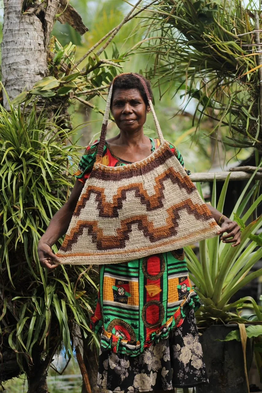 Bilums are not just bags — they are living expressions of culture, connection and resilience, handwoven by women from villages along the Sepik River in Papua New Guinea. Each one is born from an ancient weaving tradition passed down through generations, a tradition that holds identity, community and heritage at its heart.